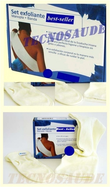O uso da Banda ea Luva proporciona uma limpeza em profundidade só com Agua, eliminando com sua continuidade as celulas mortas, de todo o corpo. Muito eficaz, nas zonas da planta dos pes, cotovelos, ombros, partes asperas que necessitam todo cuidado especial. Deixa a pele suave e com textura brilhante! Observação * Seu uso é Aconselhado só duas ( 2 ) VECES por semana, devido a sua Acção exfoliante. Faça seu Spa em casa sem necessidade de usar Geles e Sabonetes, quando assim se trata de uma exfoliação a seu Corpo. Muito eficas pelas suas caracteristicas naturais. ( Best -Seller ) Luva e banda.